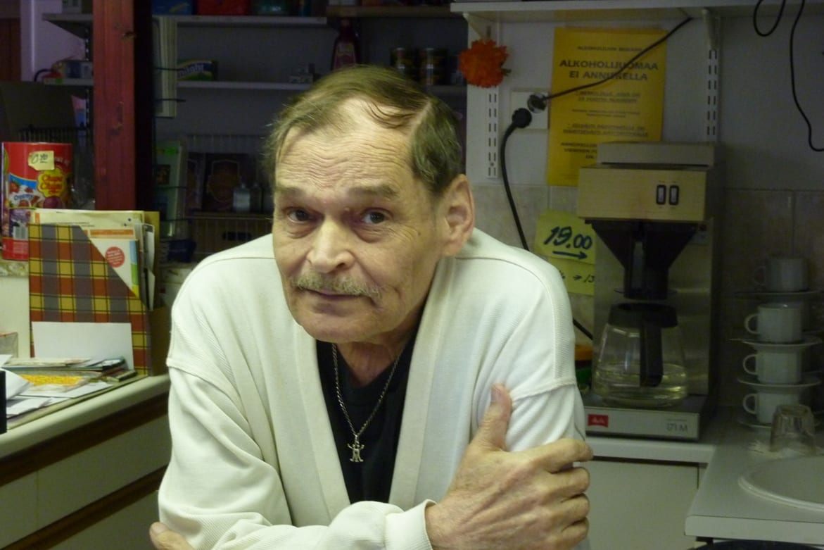 Eine ehemalige Volksschule, die mitten im Wald steht und nun seit 15 Jahren als umgebautes Restaurant mit Gästezimmern von dem 64jährigen Juha Hannula allein betrieben wird.
