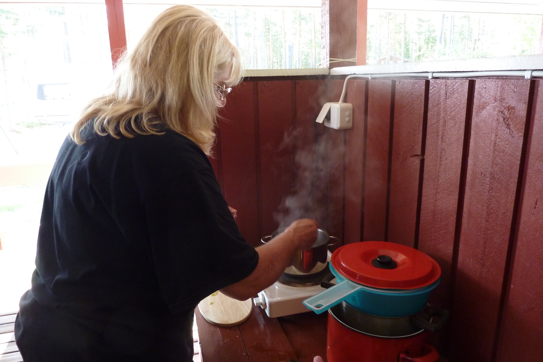Barbara nutzt eine der Kochecken und bereitet uns eine leckere Abendmahlzeit.