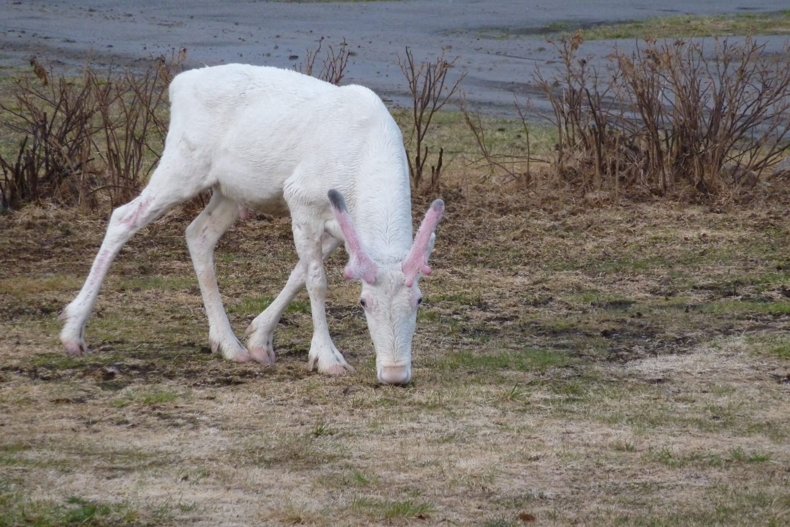 „Rentierzuchtgebiet“ weist ein Schild am Straßenrand in deutscher und englischer Sprache aus.