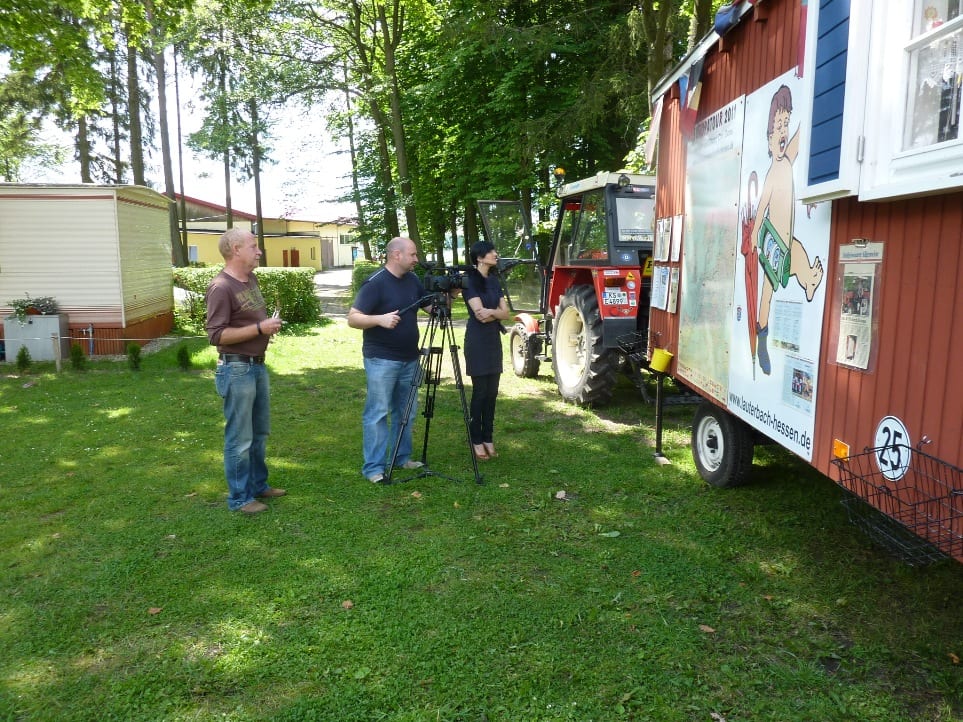 Auch unsere „begehbare Toilette“ und die unzähligen Details und Gags außen und innen am Wagen und am Trecker werden ausgiebig gefilmt.