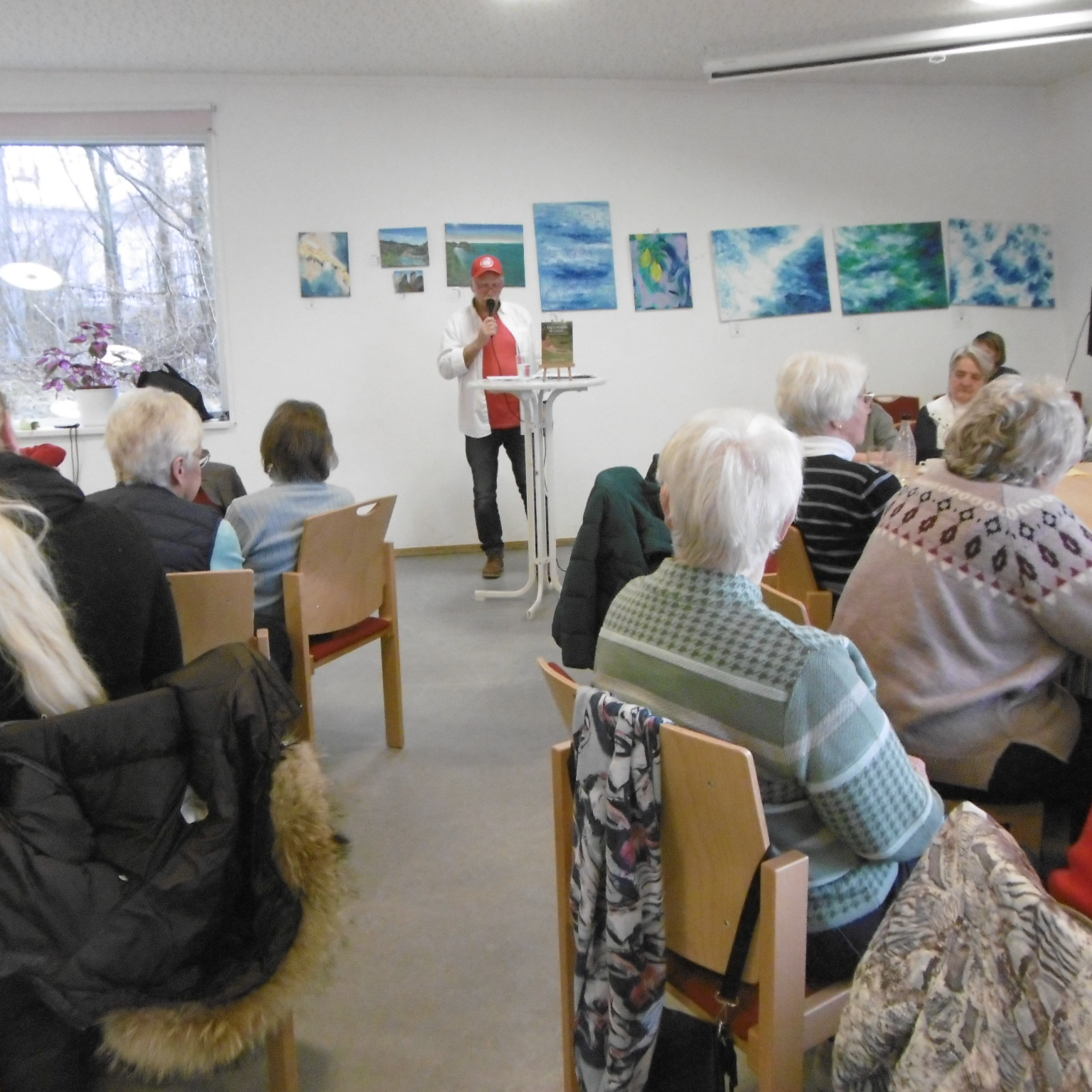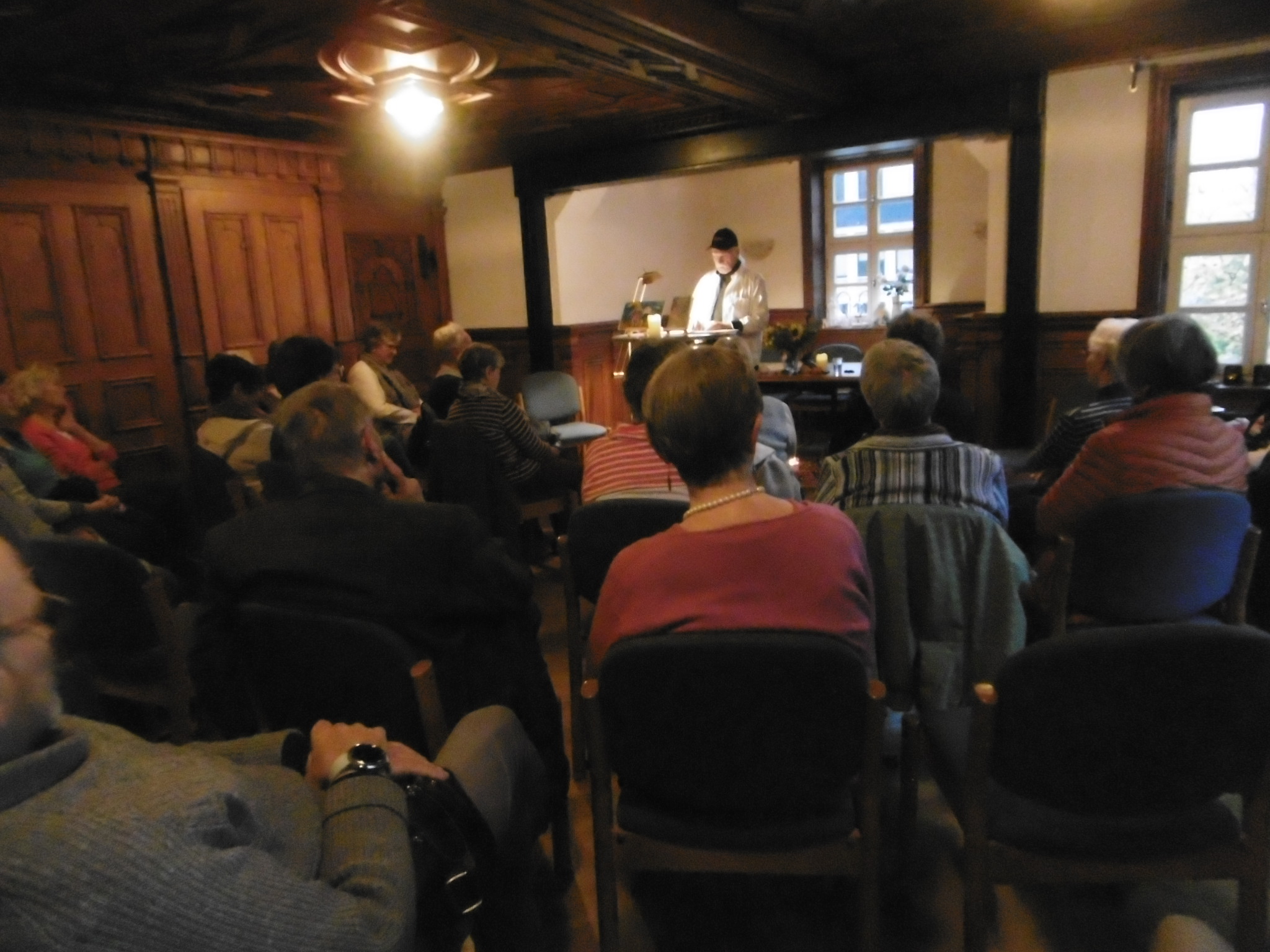 Etwa 35-40 Zuhörer, überwiegend interessierte Menschen höheren Alters hörten nach einem ausgiebigen Kaffeetrinken meinen Ausführungen zu.
