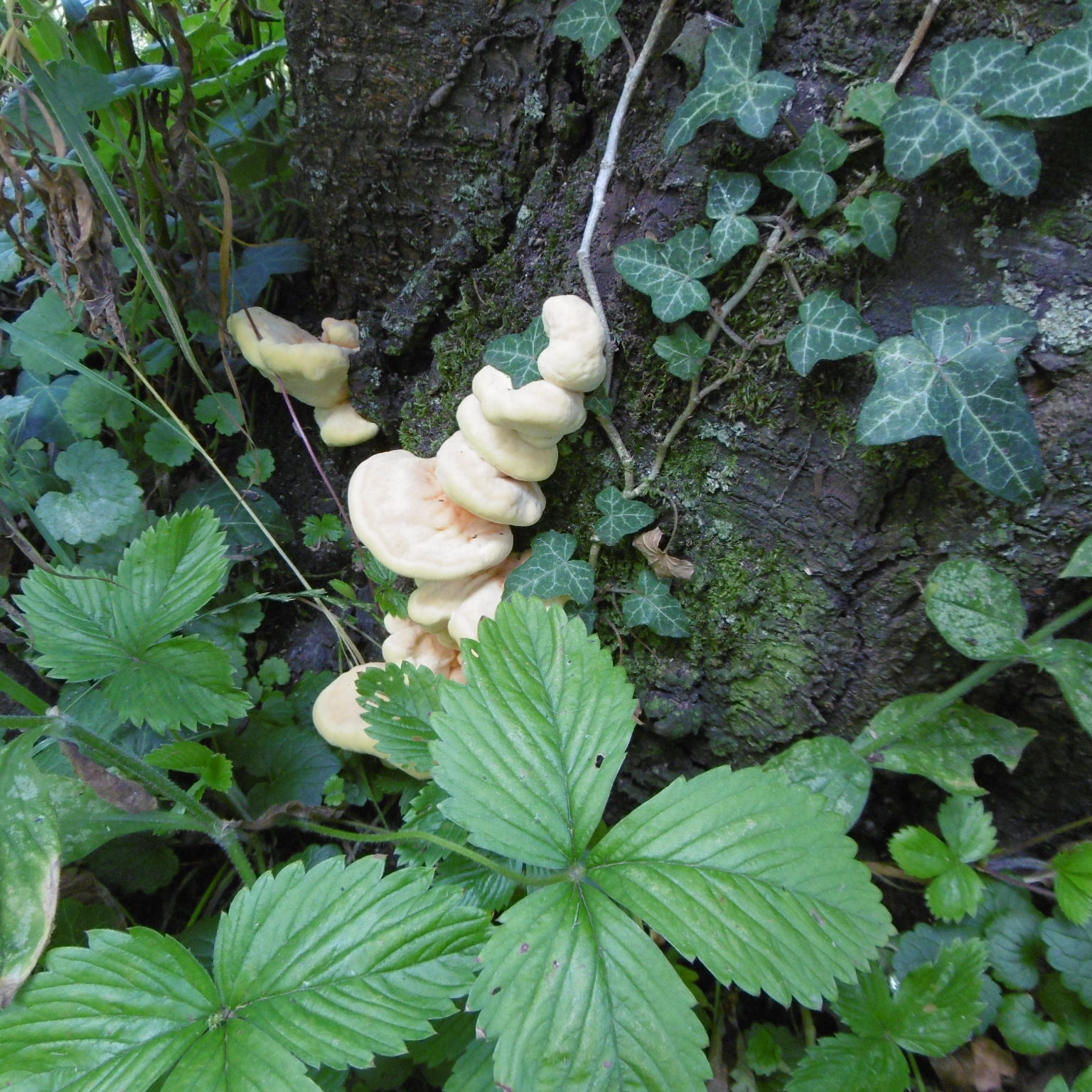 Einen ganz besonderen Baumpilz an einem unserer Wildkirschbäume entdeckte ich unterhalb des Stammes, der nach meinen Nachforschungen