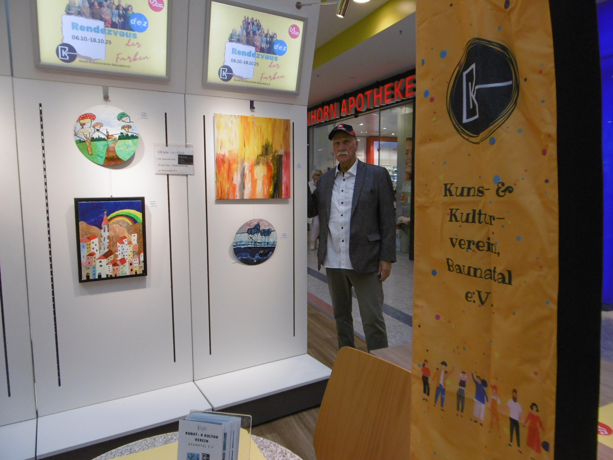 Auch hier war ich mit anderen Mitgliedern des Vereins mit Gemälden und LP-Uhren auf zwei Stellwänden vertreten.