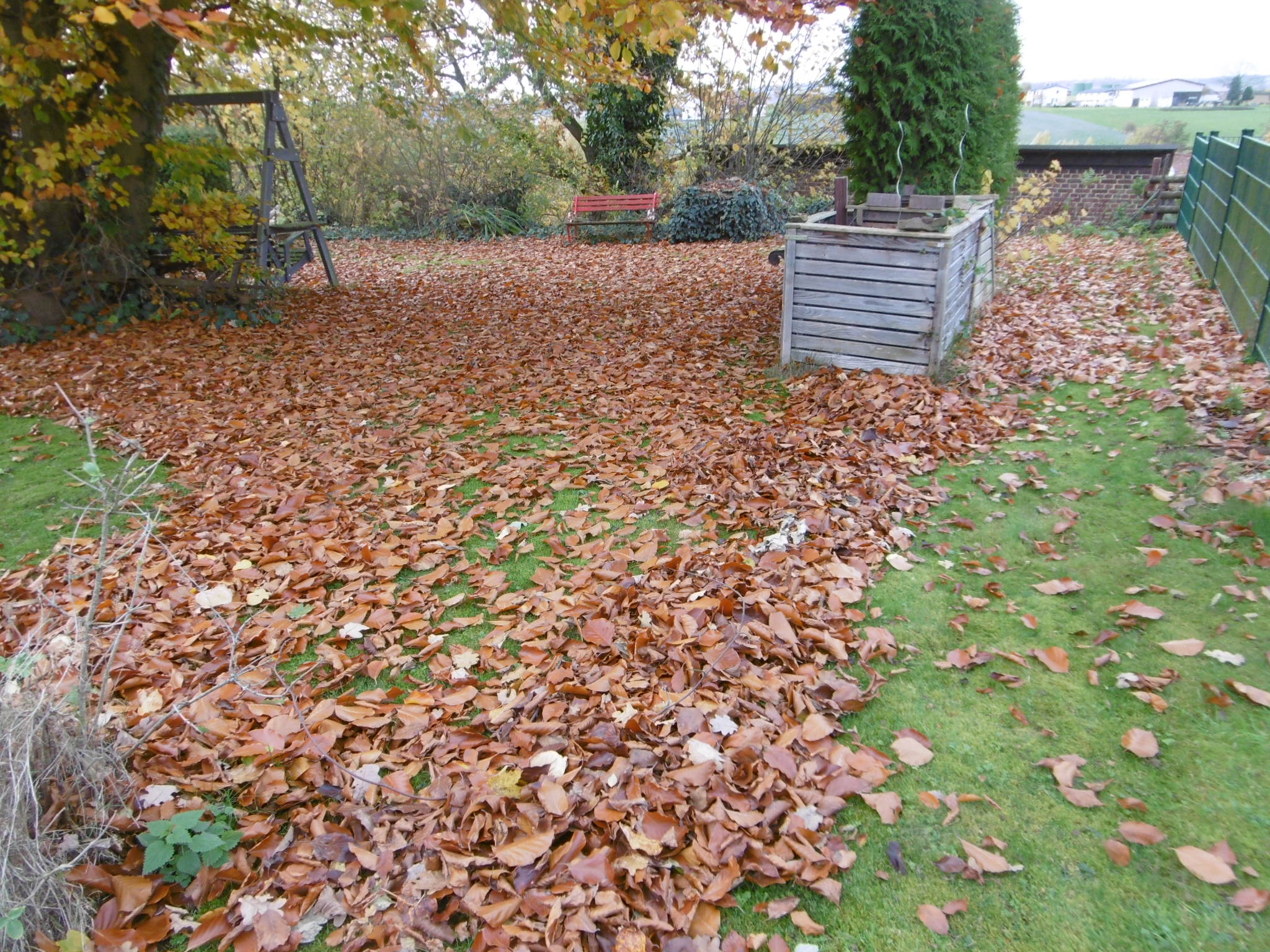 Ich habe mal die Schubkarren gezählt, die wir mit feuchtem Laub aufgeladen und in einer Hangecke aufgehäuft haben.